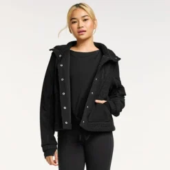 Layer up for a stylish, cool-weather look with this women’s jacket by FLX. The mixed-media design lends a chic look for on-the-move comfort.